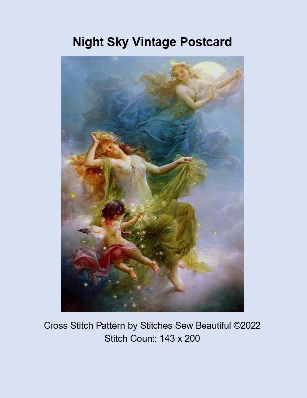 Night Sky Vintage Postcard ©Adobe Ext. License cross stitch pattern by StitchesSewBeautiful