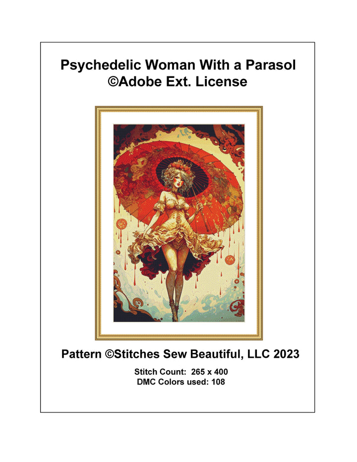 Psychadelic Woman With a Parasol ©Adobe Ext. License cross stitch pattern by StitchesSewBeautiful