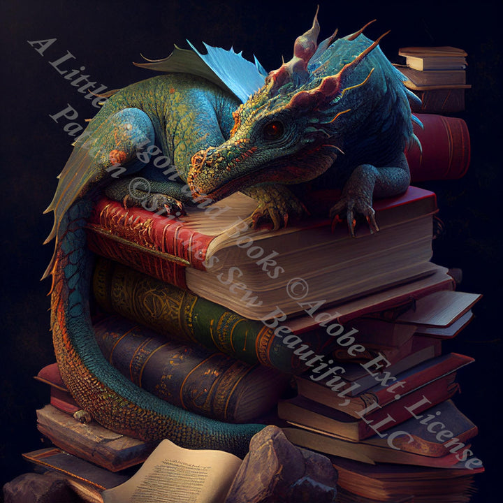 A Little Dragon and Books cross stitch pattern © Adobe Ext. License