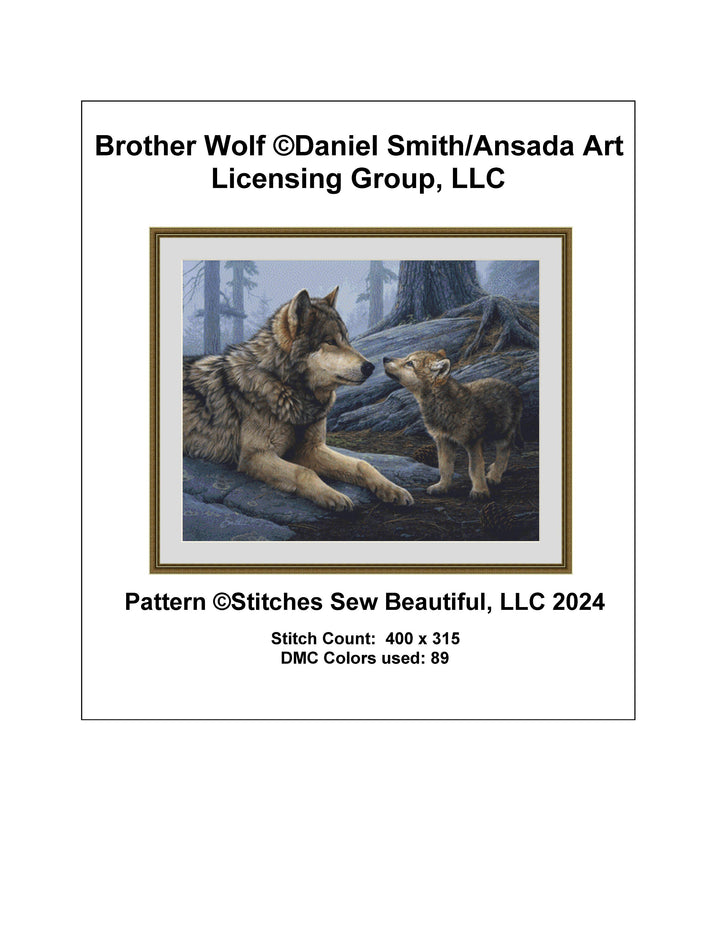 Brother Wolf cross stitch pattern by Daniel Smith/Ansada Art Licensing Group, LLC.