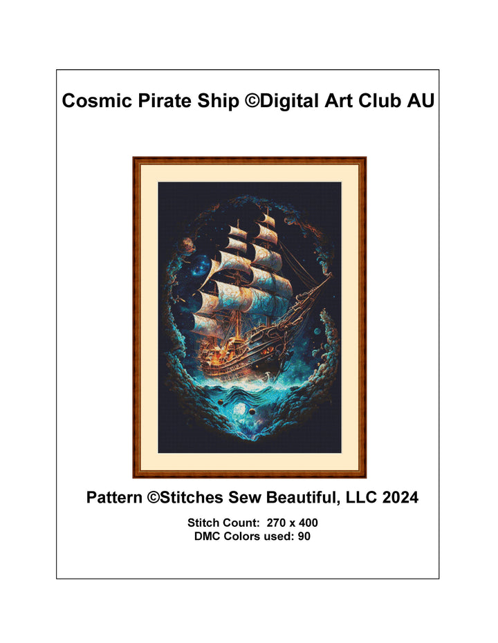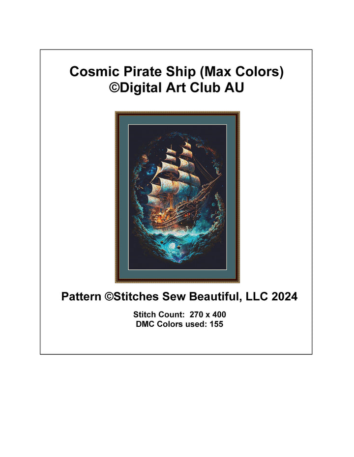 Cosmic Pirate Ship (Max Size/Color) counted cross stitch pattern by Digital Art Club AU
