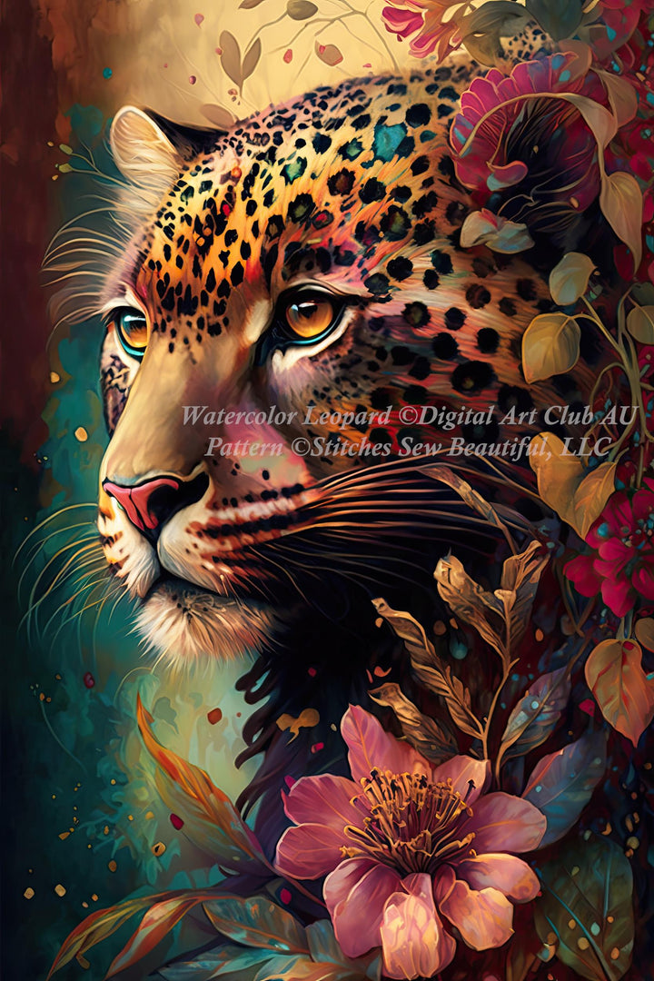 Watercolor Leopard counted cross stitch pattern by Digital Art Club AU