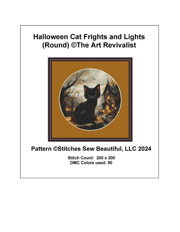 Halloween Cat Frights and Lights (Round) cross stitch pattern by The Art Revivalist