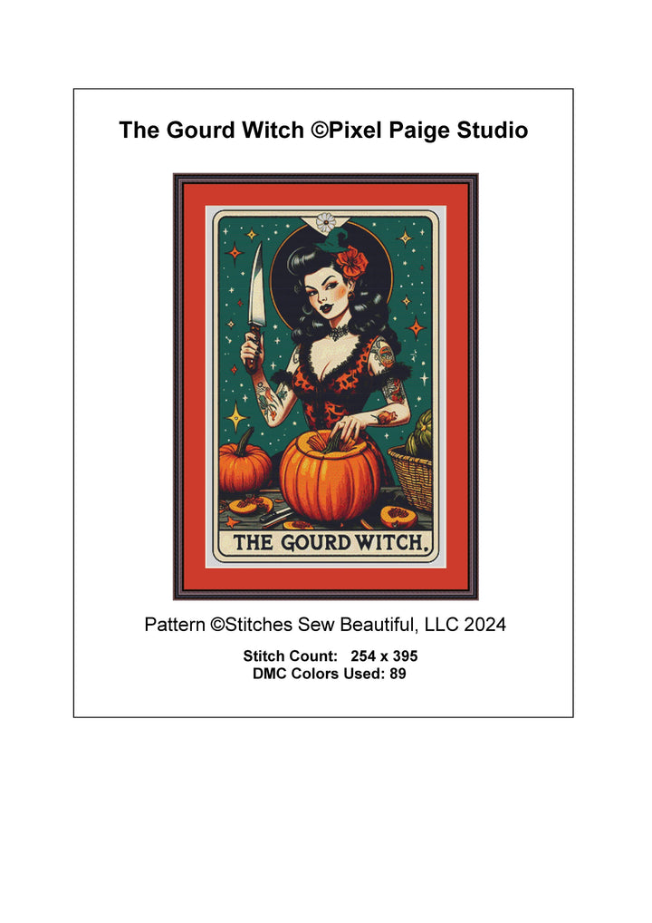 The Gourd Witch cross stitch pattern by Pixel Paige Studio
