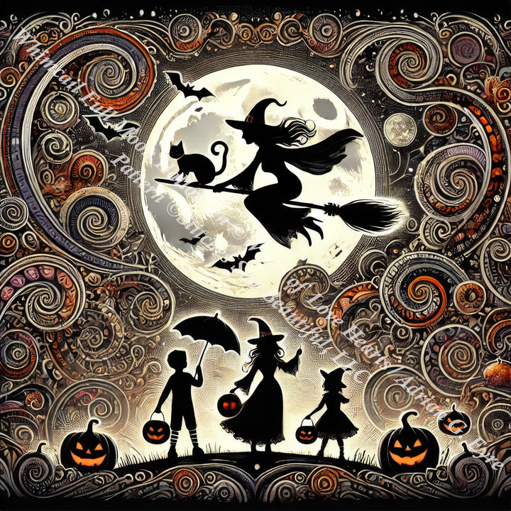 Whimsical Full Moon Halloween counted cross stitch pattern by World of Love Hearts/Adrian G. Eyre