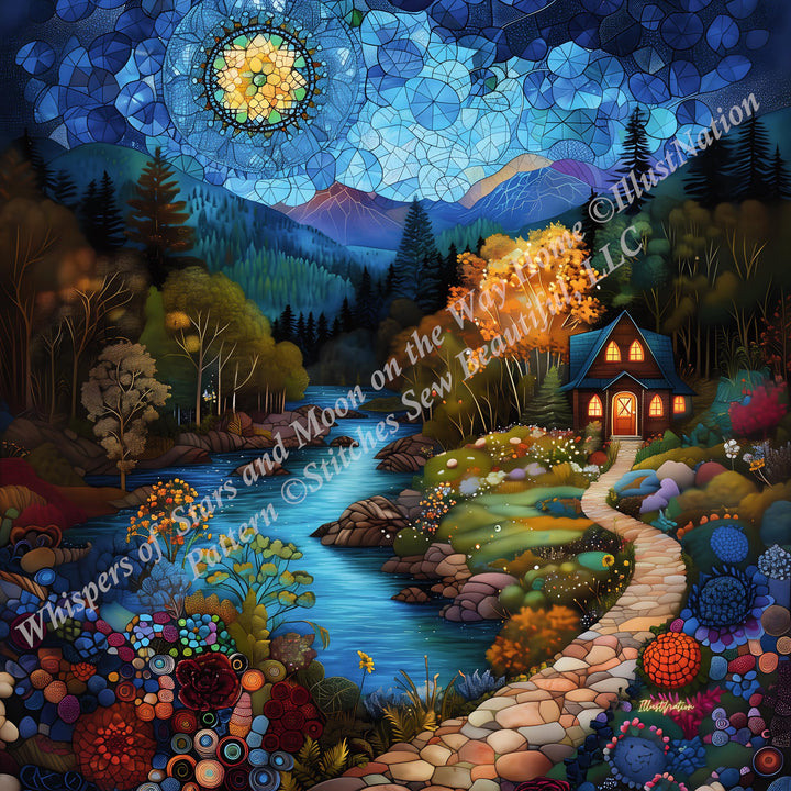 Whispers of Stars and Moon on the Way Home (Max Color) counted cross stitch pattern by IllustNation