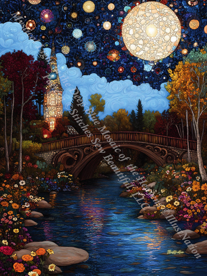 Mystical Light in the Deep Blue Mosaic of the Heavens counted cross stitch pattern by IllustNation