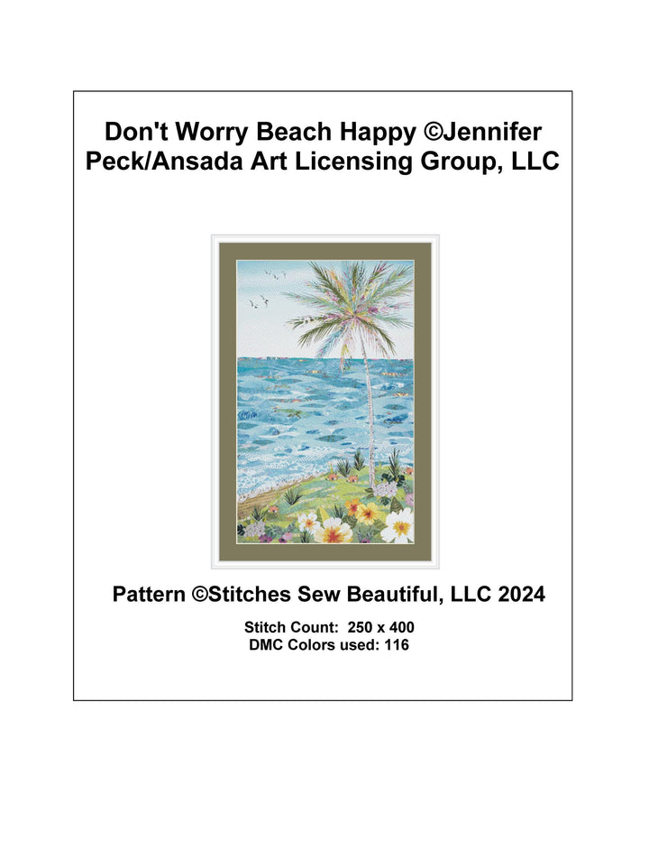 Don't Worry Beach Happy counted cross stitch pattern by Jennifer Peck/Ansada Art Licensing Group, LLC