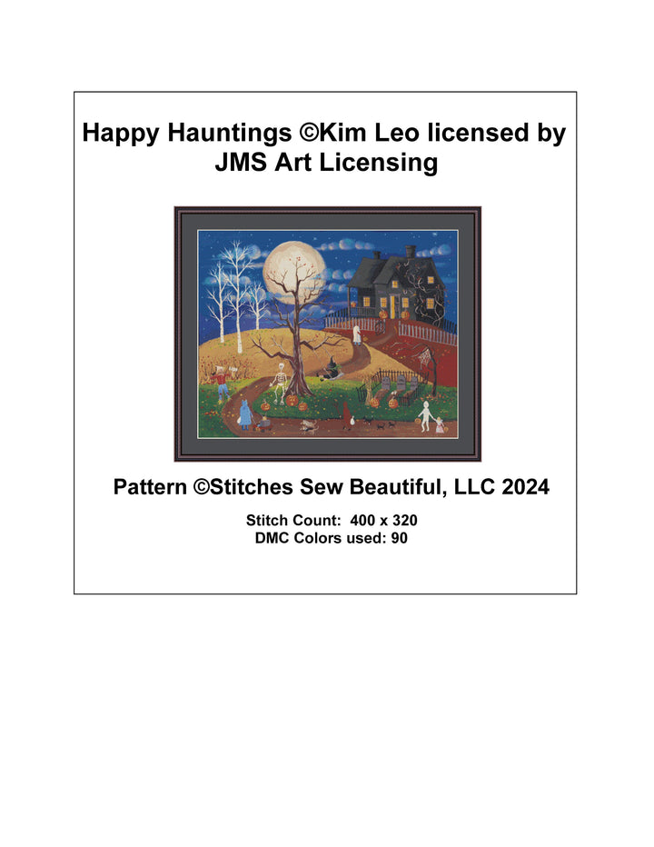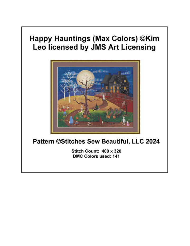 Happy Hauntings (Max Colors) cross stitch pattern by Kim Leo licensed by JMS Art Licensing
