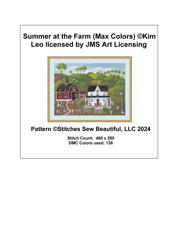 Summer at the Farm (Max Colors) cross stitch pattern by Kim Leo licensed by JMS Art Licensing