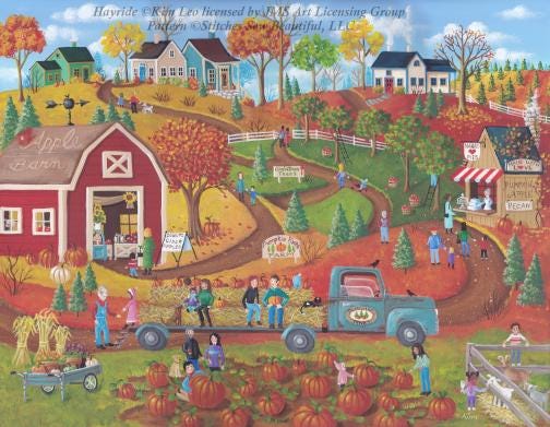 Hayride counted cross stitch pattern by Kim Leo licensed by JMS Art Licensing