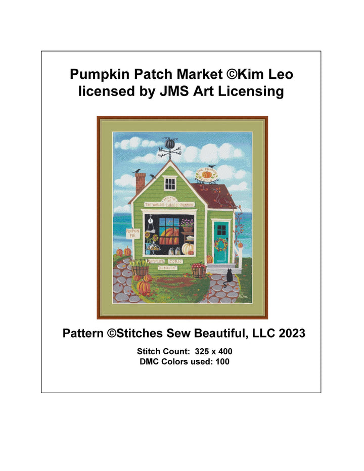 Pumpkin Patch Market cross stitch pattern by Kim Leo licensed by JMS Art Licensing
