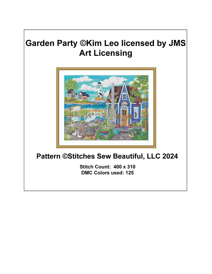 Garden Party cross stitch pattern by Kim Leo licensed by JMS Art Licensing