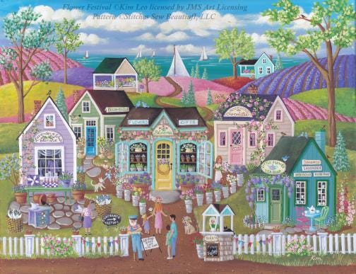 Flower Festival cross stitch pattern by Kim Leo licensed by JMS Art Licensing