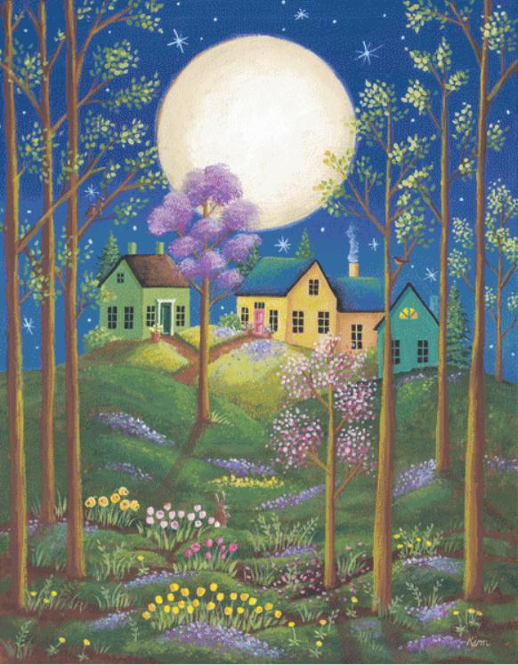 June Moon cross stitch pattern by Kim Leo licensed by JMS Art Licesing