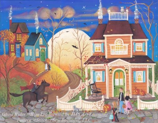 Happy Hauntings cross stitch pattern by Kim Leo licensed by JMS Art Licensing