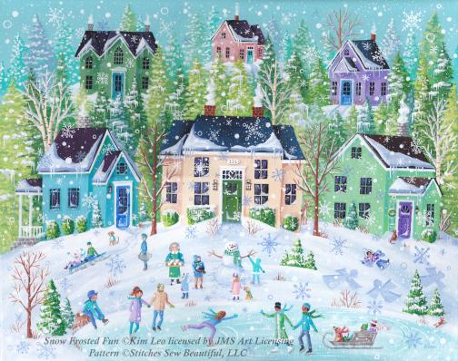 Snow Frosted Fun counted cross stitch pattern by Kim Leo licensed by JMS Art Licensing