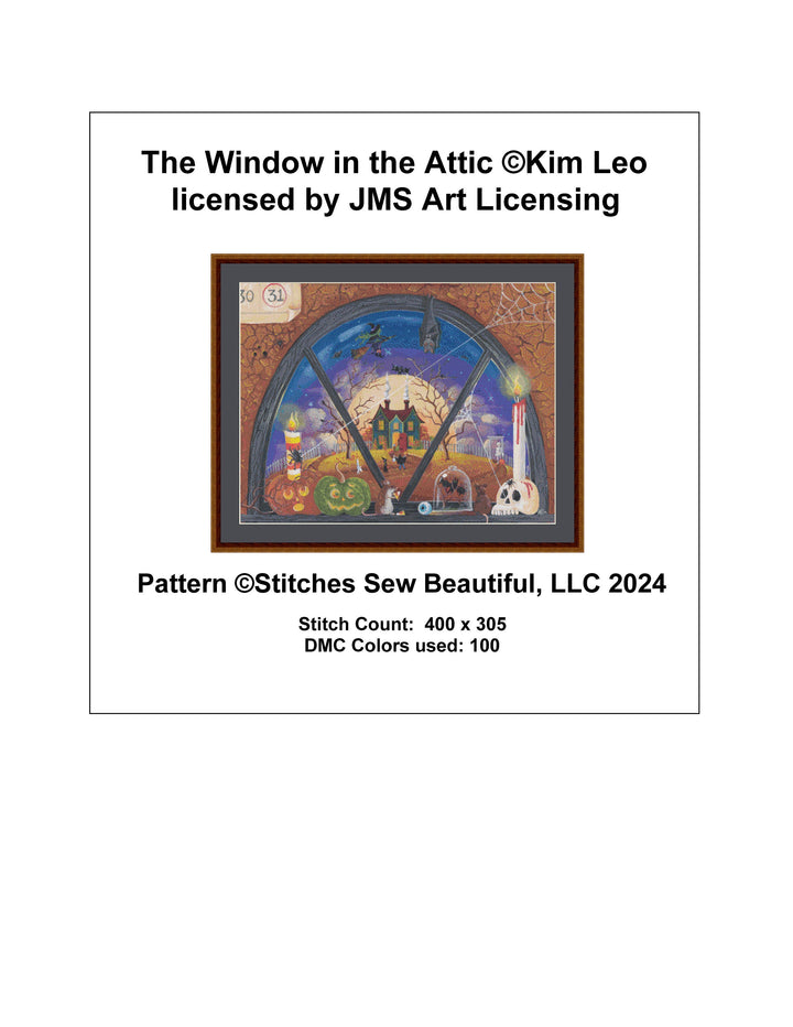 The Window in the Attic cross stitch pattern by Kim Leo licensed by JMS Art Licensing