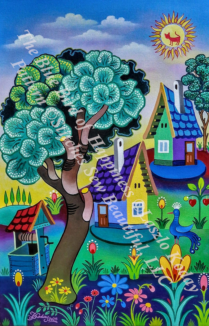 The Blue Bird of Happiness counted cross stitch pattern by Laszlo Koday