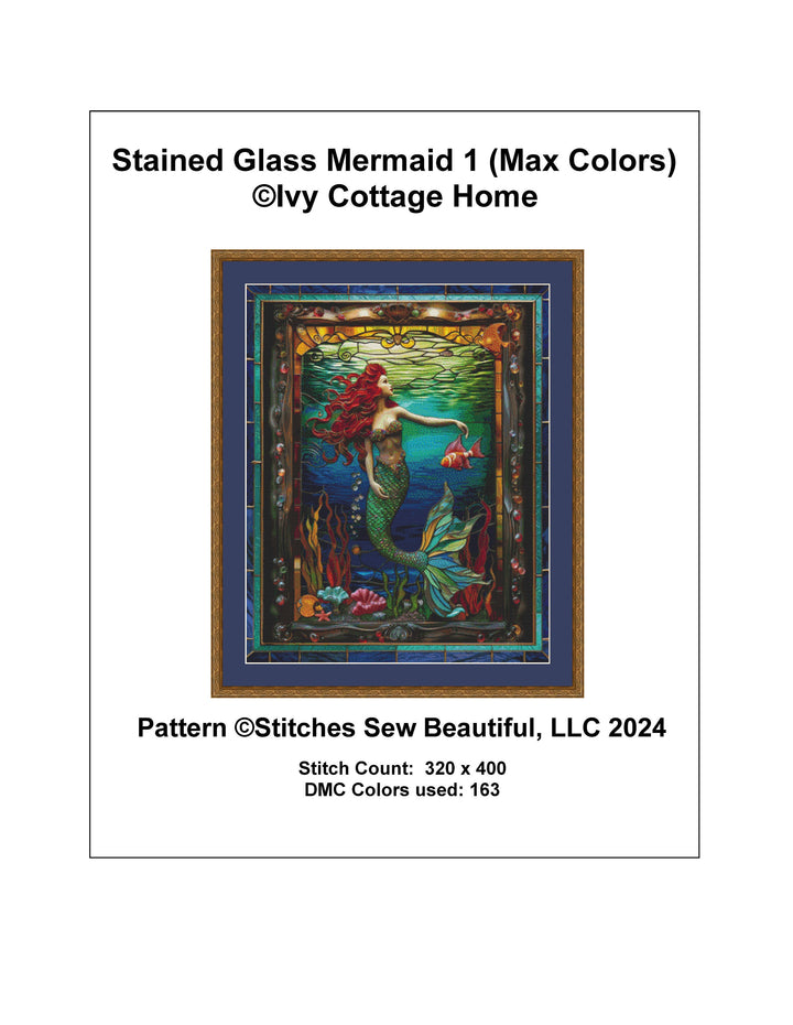 Stained Glass Mermaid 1 (Max Colors) cross stitch pattern by Ivy Cottage Home