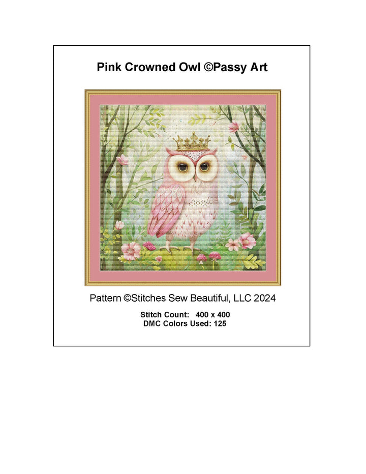 Pink Crowned Owl (Max Size/Colors) cross stitch pattern by PassyArt