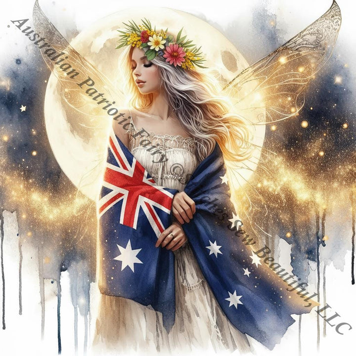 Australian Patriotic Fairy counted cross stitch pattern by Stitches Sew Beautiful