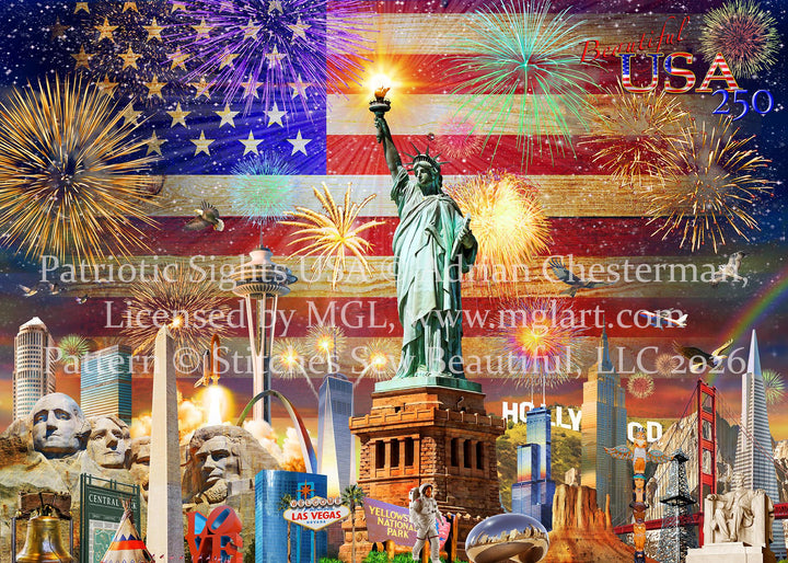 Patriotic Sights USA counted cross stitch pattern by Adrian Chesterman, Licensed by MGL, www.mglart.com