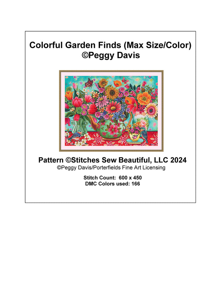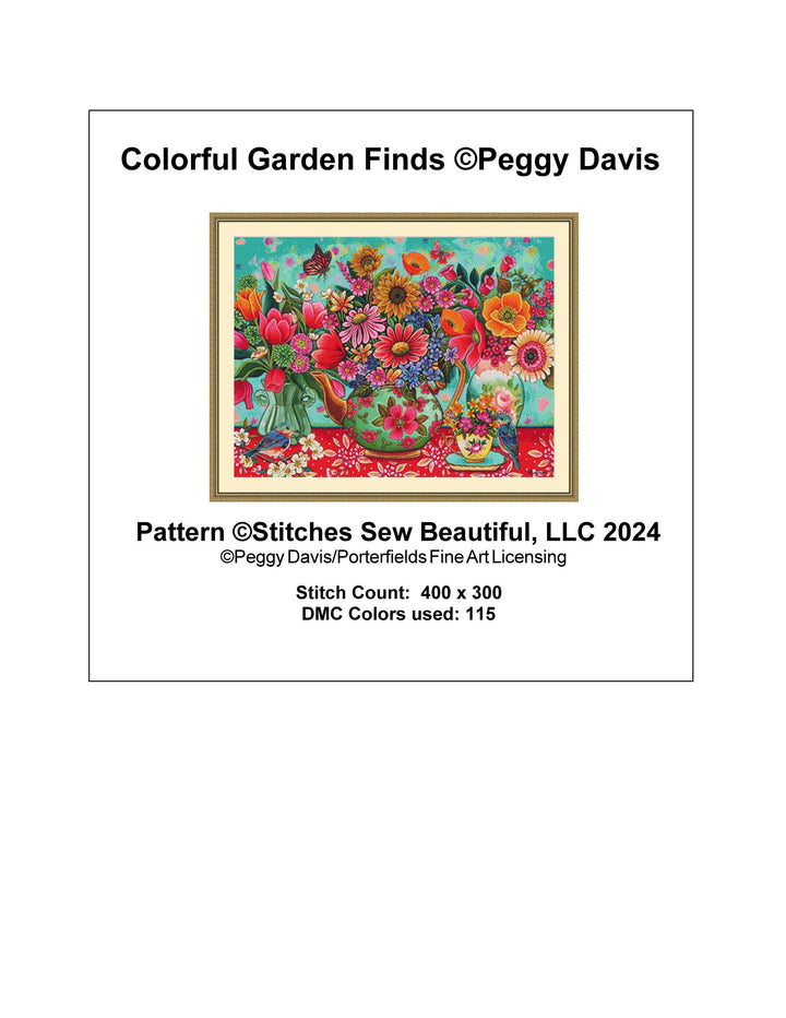 Colorful Garden Finds (Max Size/Max Color) counted cross stitch pattern by Peggy Davis/Porterfields Fine Art Licensing