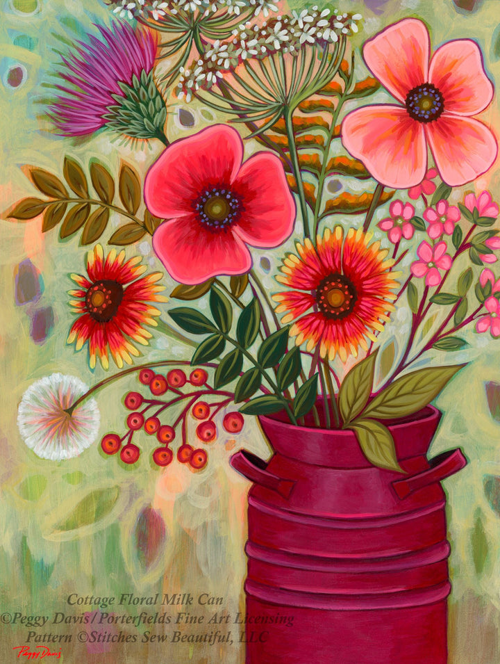 Cottage Floral Milk Can (Max Size/Color) counted cross stitch pattern by Peggy Davis/Porterfields Fine Art Licensing