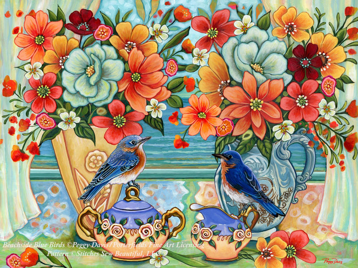 Beachside Blue Birds (Max Size/Color) counted cross stitch pattern by Peggy Davis/Porterfields Fine Art Licensing