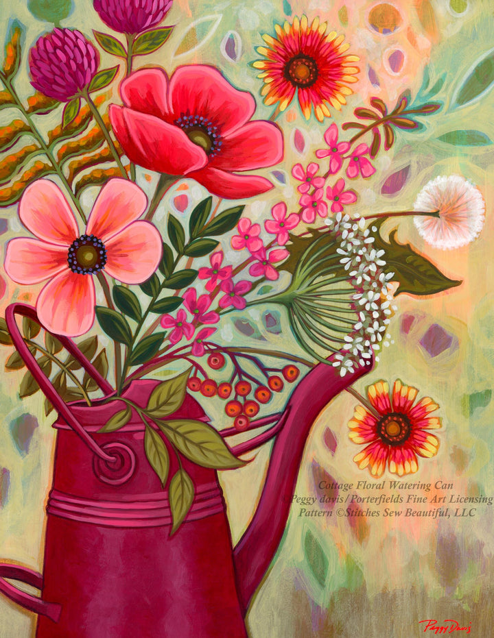 Cottage Floral Watering Can (Max Size/Color) counted cross stitch pattern by Peggy Davis/Porterfields Fine Art Licensing