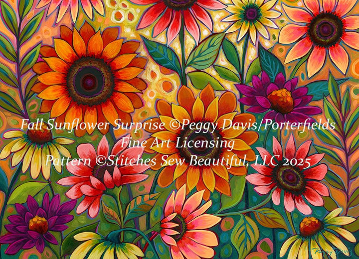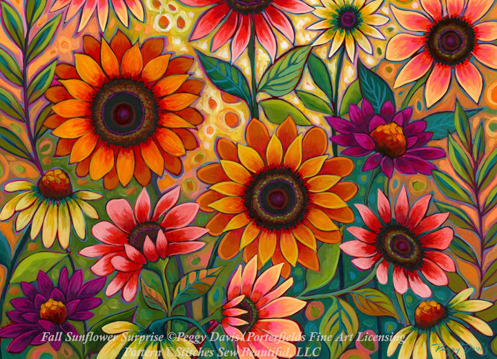 Fall Sunflower Surprise (Max Size/Color) counted cross stitch pattern by Peggy Davis/Porterfields Fine Art Licensing