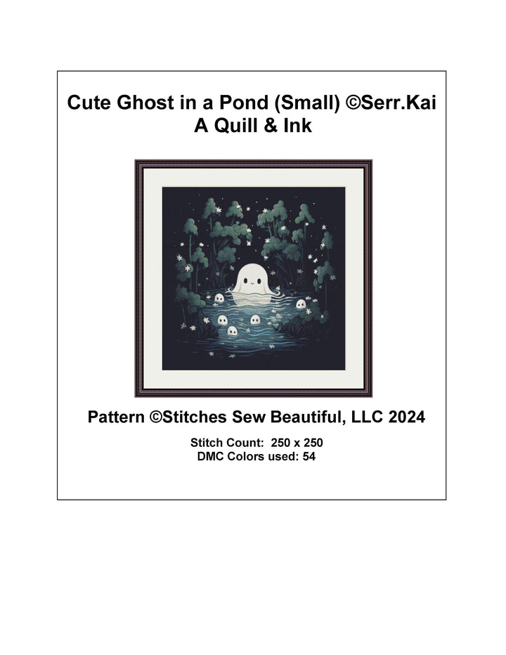 Cute Ghost in a Pond (Small) cross stitch pattern by Serr.Kai A Quill & Ink