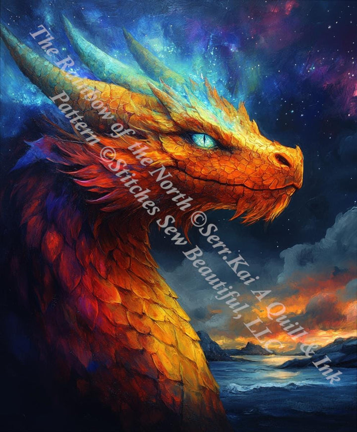 Rainbow Feathered Dragon counted cross stitch pattern by Serr.Kai A Quill & Ink