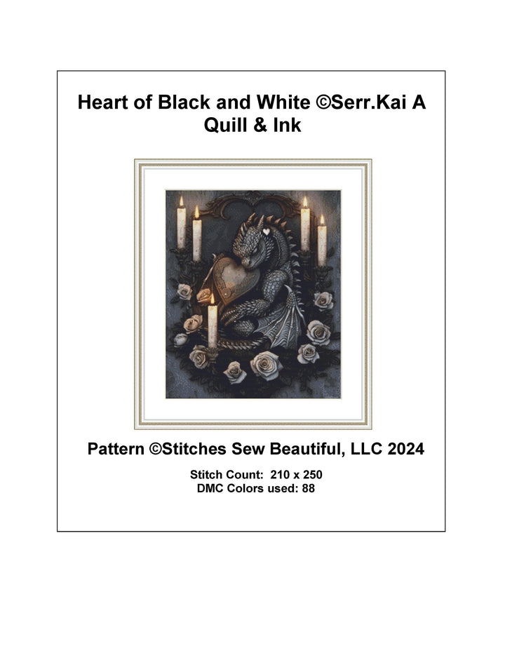 Heart of Black and White (Small) cross stitch pattern by Serr.Kai A Quill & Ink
