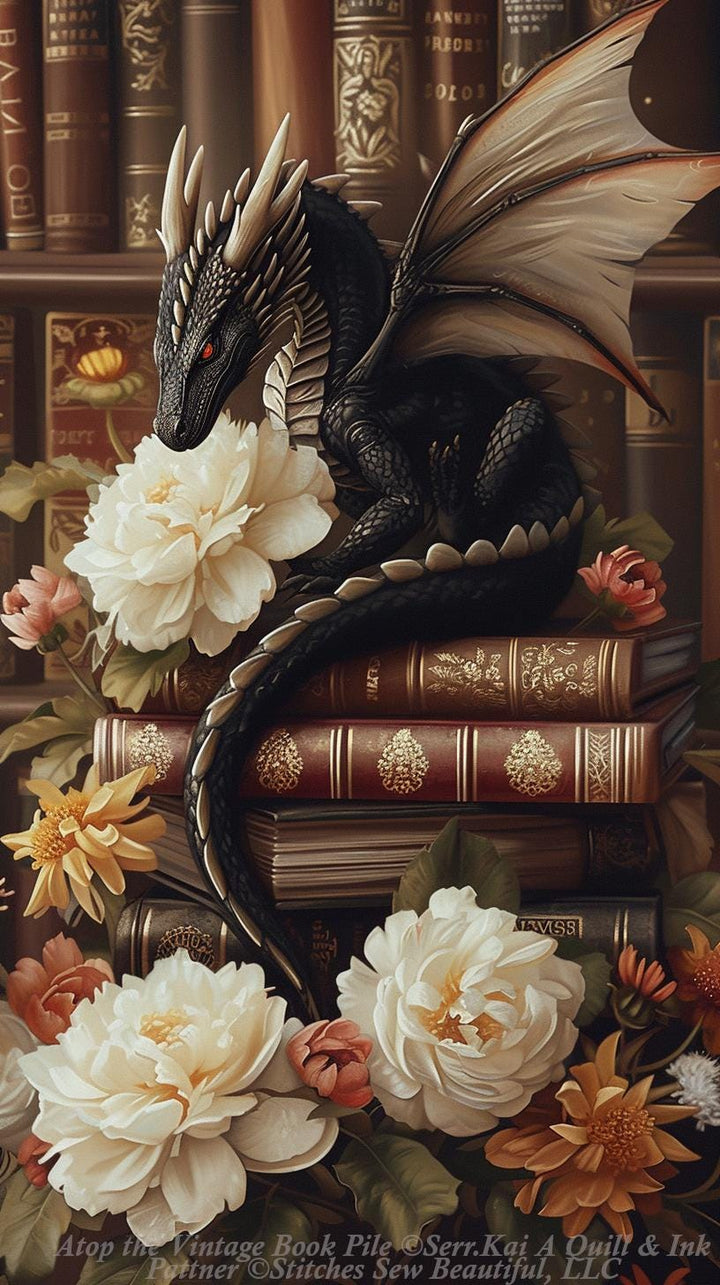 Atop the Vintage Book Pile counted cross stitch pattern by Serr.Kai A Quill & Ink