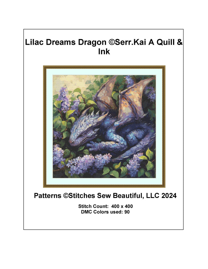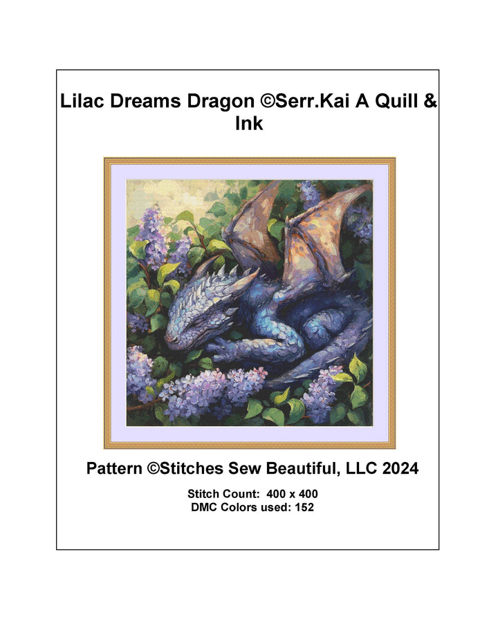 Lilac Dreams Dragon cross stitch pattern by Serr.Kai A Quill & Ink
