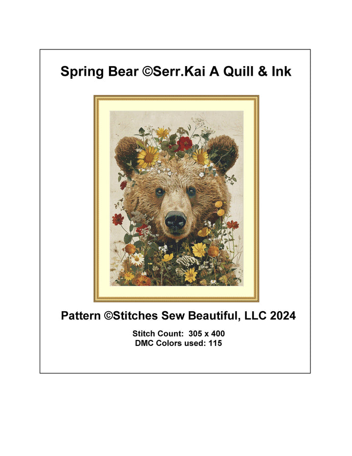 Spring Bear (Max Colors) cross stitch pattern by Serr.Kai A Quill & Ink
