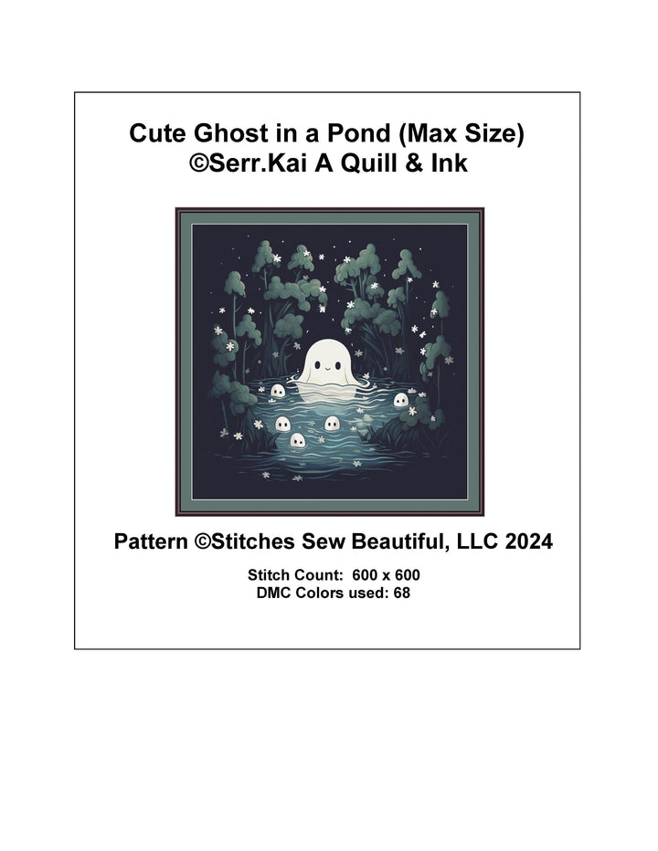 Cute Ghost in a Pond (Max Size) cross stitch pattern by Serr.Kai A Quill & Ink