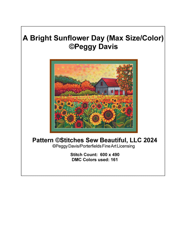 A Bright Sunflower Day (Max Size/Color) counted cross stitch pattern by Peggy Davis/Porterfields Fine Art Licensing