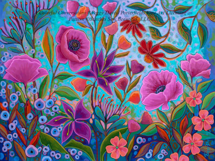 A Colorful Conversation (Max Size/Color) counted cross stitch pattern by Peggy Davis/Porterfields Fine Art Licensing