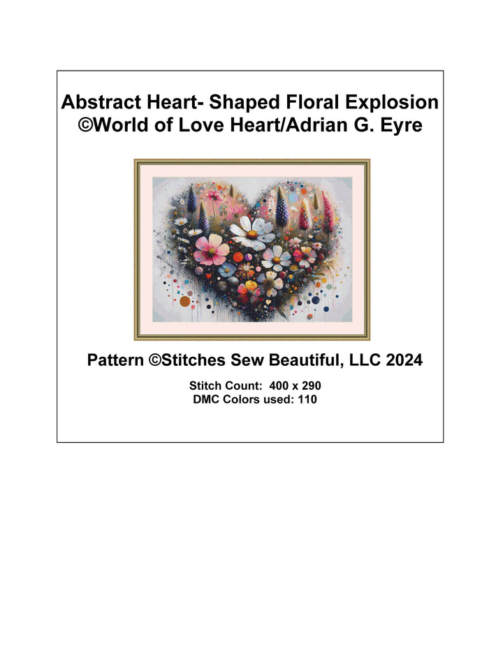 Abstract Heart-Shaped Floral Explosion cross stitch pattern by World of Love Hearts/Adrian G. Eyre