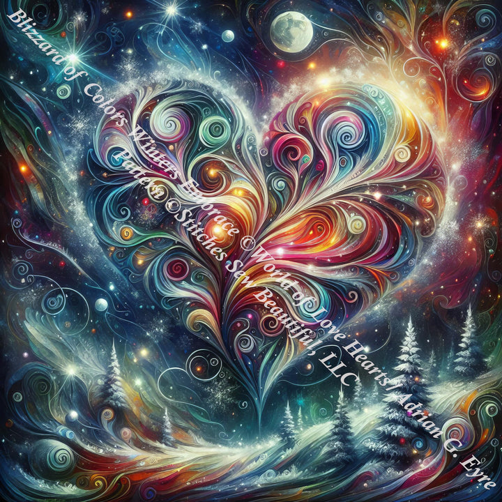 Blizzard of Colors Winters Embrace counted cross stitch pattern by World of Love Hearts/Adrian G. Eyre
