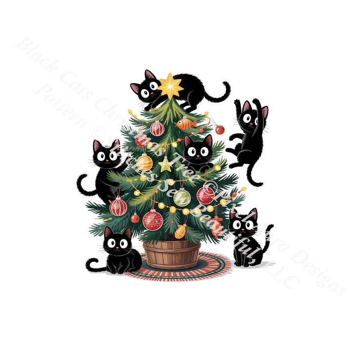Black Cats Christmas Tree (Ornament) counted cross stitch pattern by Pixel Aura Designs