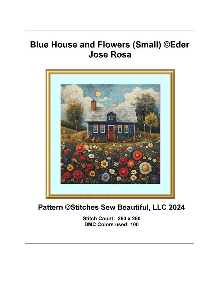 Blue House and Flowers (Small) cross stitch pattern by Eder Jose Rosa