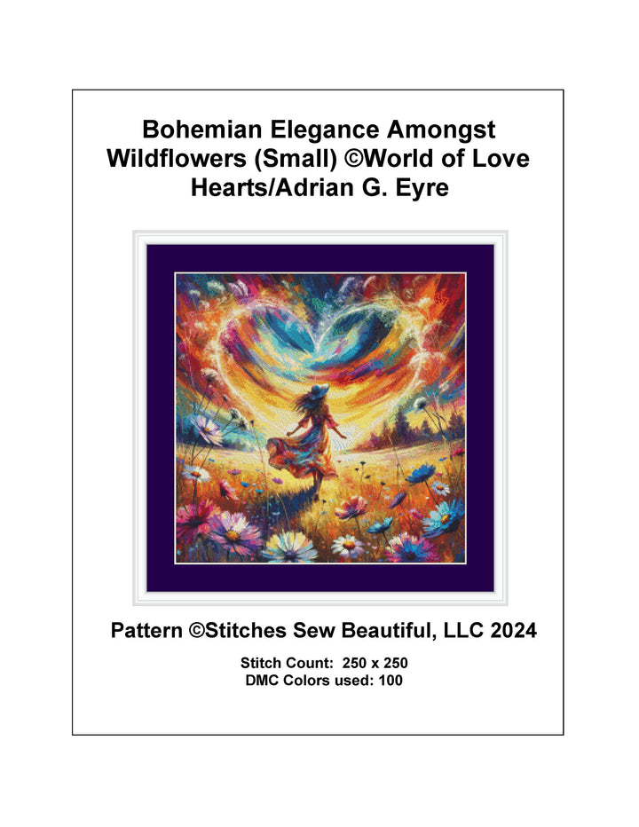 Bohemian Elegance Amongst Wildflowers (Small) cross stitch pattern by World of Love Hearts/Adrian G. Eyre