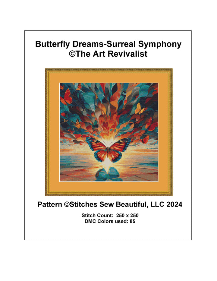 Butterfly Dreams-Surreal Symphony (Max Colors) cross stitch pattern by The Art Revivalist