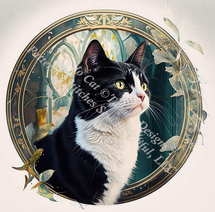 Tuxedo Cat counted cross stitch pattern by Tabone Designs