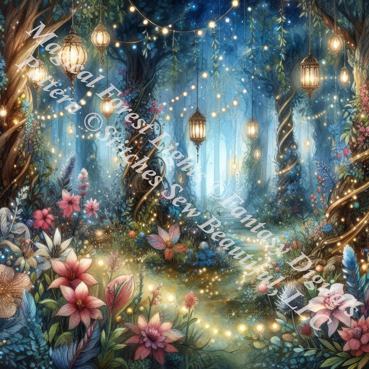 Magical Forest Lights counted cross stitch pattern by Fantasy Digitals