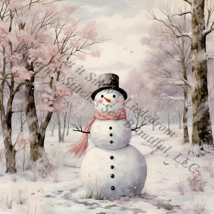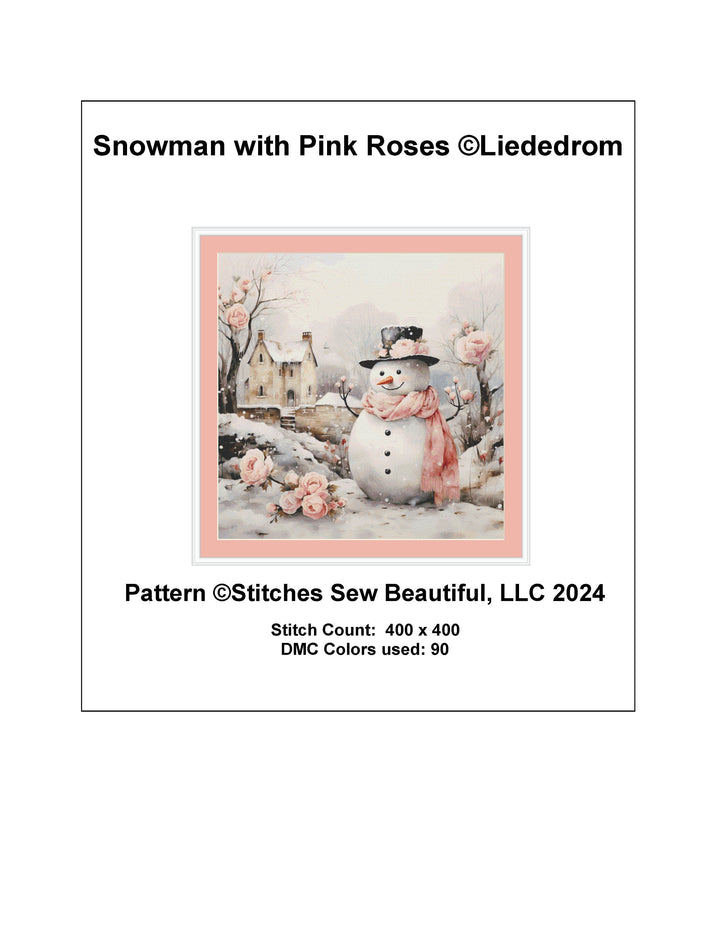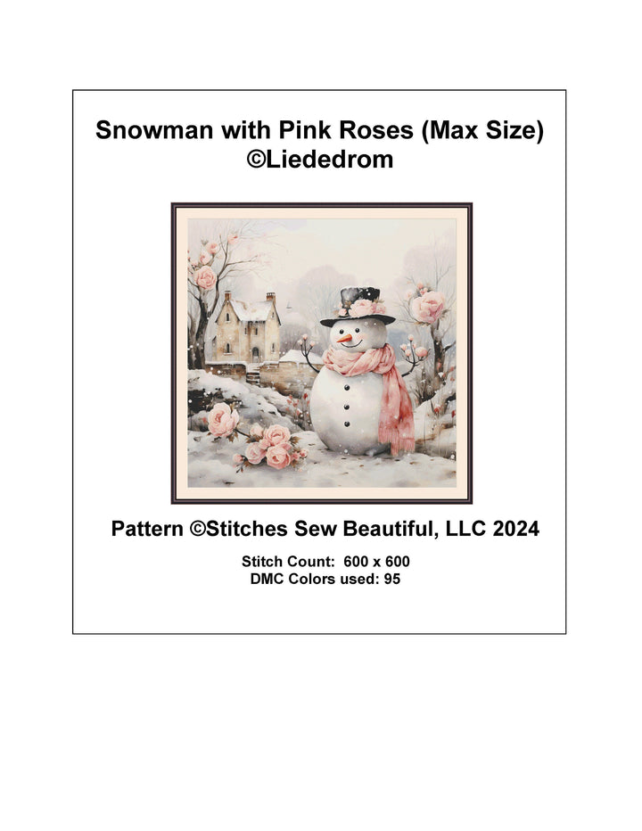 Snowman with Pink Roses (Max Size) cross stitch pattern by Liededrom